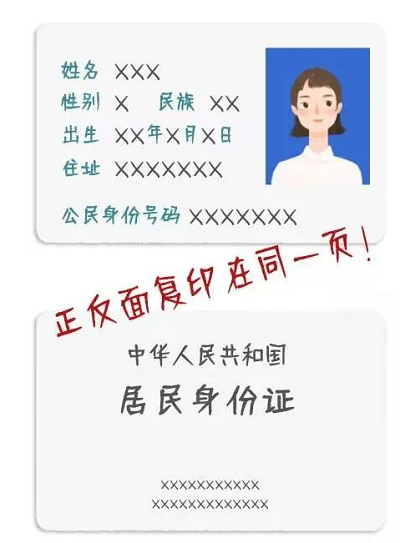 2.本人有效期內(nèi)的身份證原件、復(fù)印件各1份(要求將身份證正反面復(fù)印在同一張A4紙張的同一面,見圖例2);