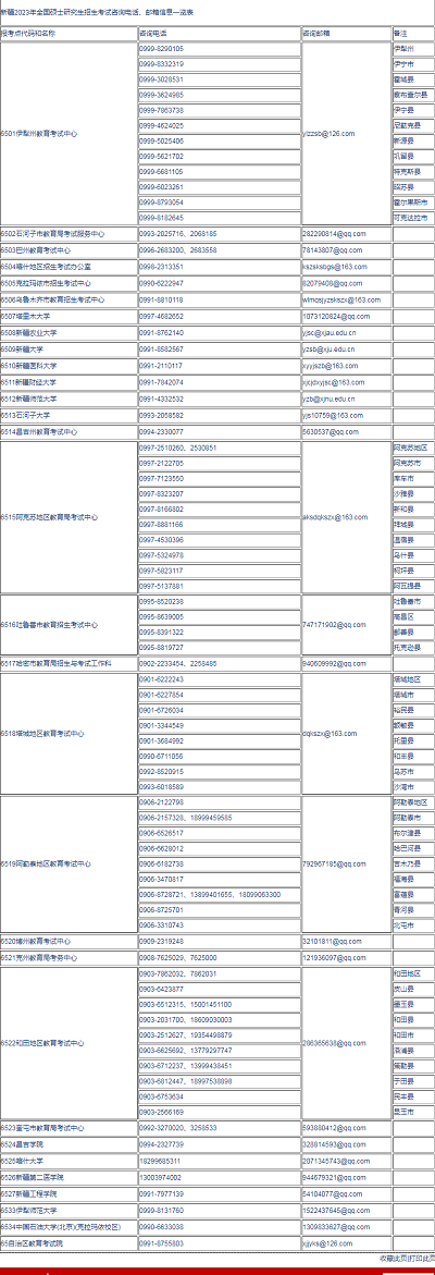 新疆2023年全國(guó)碩士研究生招生考試健康信息填報(bào)及各報(bào)考點(diǎn)咨詢聯(lián)系方式公布