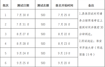 (二)報(bào)名時(shí),各考生選擇測(cè)試地區(qū)(淮安市)、測(cè)試日期及測(cè)試考點(diǎn)(淮安市開放大學(xué))。