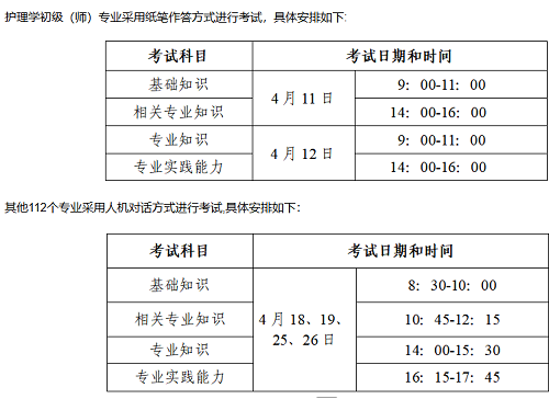 護理學初級(師)專業(yè)采用紙筆作答方式進行考試,具體安排如下: