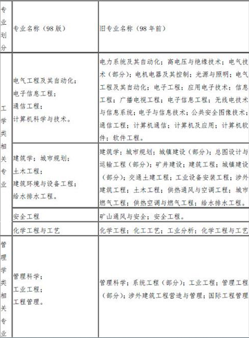 消防工程相關(guān)專業(yè)新舊對(duì)照表
