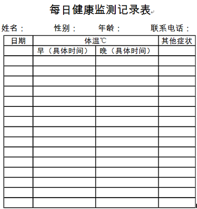 2.考核前,考生需開(kāi)展為期14天的自我健康監(jiān)測(cè),填寫《每日健康監(jiān)測(cè)記錄表》。(日期為考生參加考試前14日)
