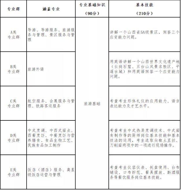 山西省2022年旅游服務(wù)類對口升學(xué)職業(yè)技能考試辦法(試行)