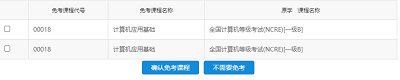 3.在江蘇省參加全國計算機(jī)等級考試(NCRE)并獲得合格證書的考生,在點擊進(jìn)入本次免考項目后會出現(xiàn)彈窗提示(如圖1),勾選免考課程后,點擊確認(rèn)免考課程,可直接得到免考審核結(jié)果(無需辦理現(xiàn)場確認(rèn)手續(xù))。