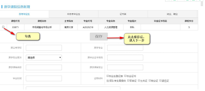 4.使用本人已畢業(yè)課程成績用于申請免考的,可點擊“江蘇自考畢業(yè)生”,如出現(xiàn)可勾選課程用于免考申請的(如圖2),須勾選后再點擊保存,返回圖3界面,點擊免考申請修改,確認(rèn)無誤后點擊“提交申請”。