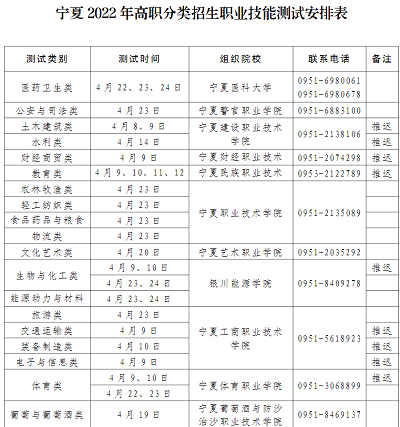 附件:寧夏2022年高職分類招生職業(yè)技能測(cè)試安排表.