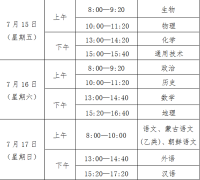 經(jīng)研究決定,2022年3月我省普通高中學(xué)業(yè)考試調(diào)整至7月15日—17日舉行,具體考試時(shí)間安排如下: